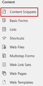 Microsoft defines Content Snippets as “small chunks of editable content that can be placed by a developer in a header, footer, web page or a web template, allowing for customizable content to populate any portion of a webpage’s layout easily” (“Customize Content by Using Content Snippets”).