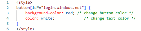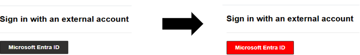Keep in mind the proper ID will need to be used to target the desired element. As shown above, button[id*=“login.windows.net”] will target the Microsoft Entra ID sign-in button. See the visual changes below: